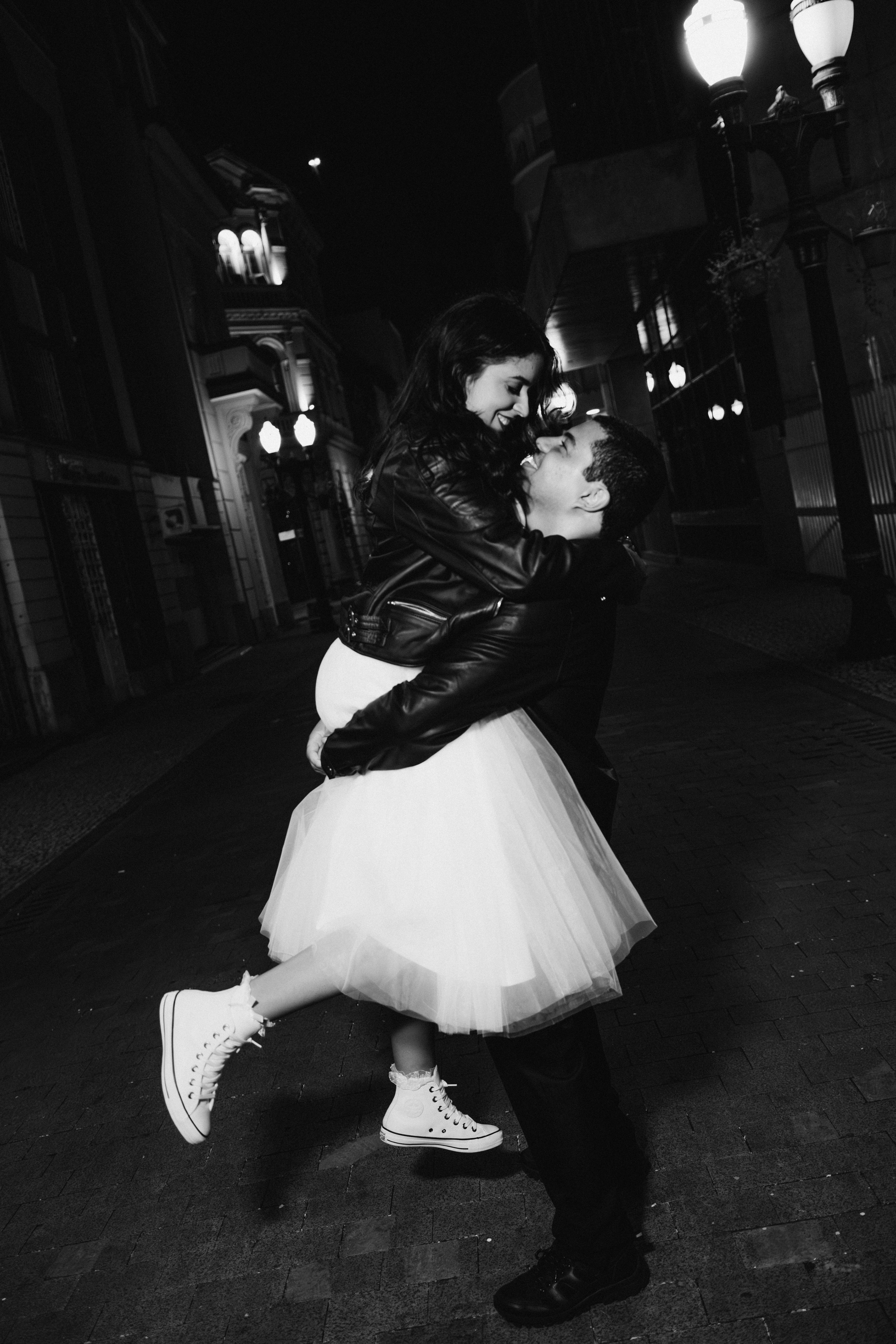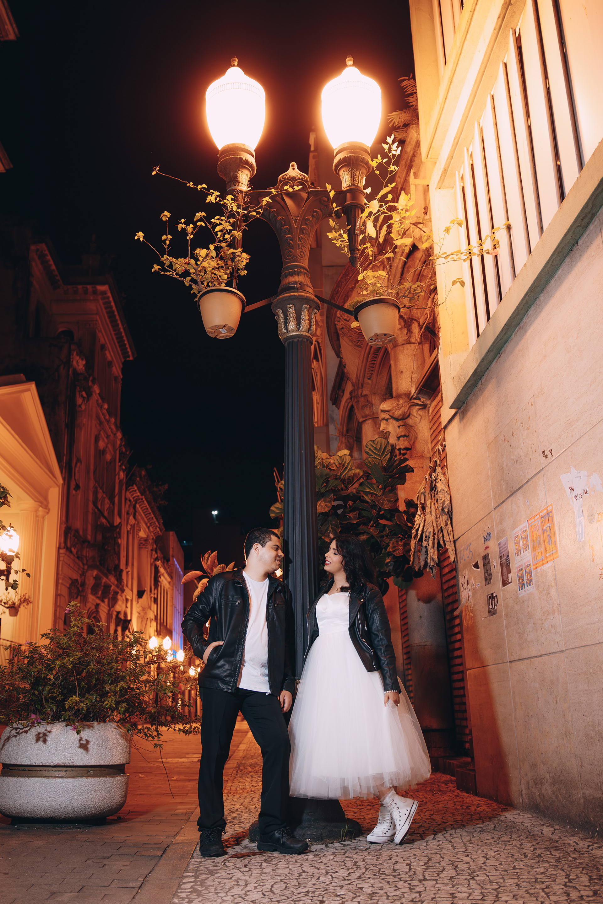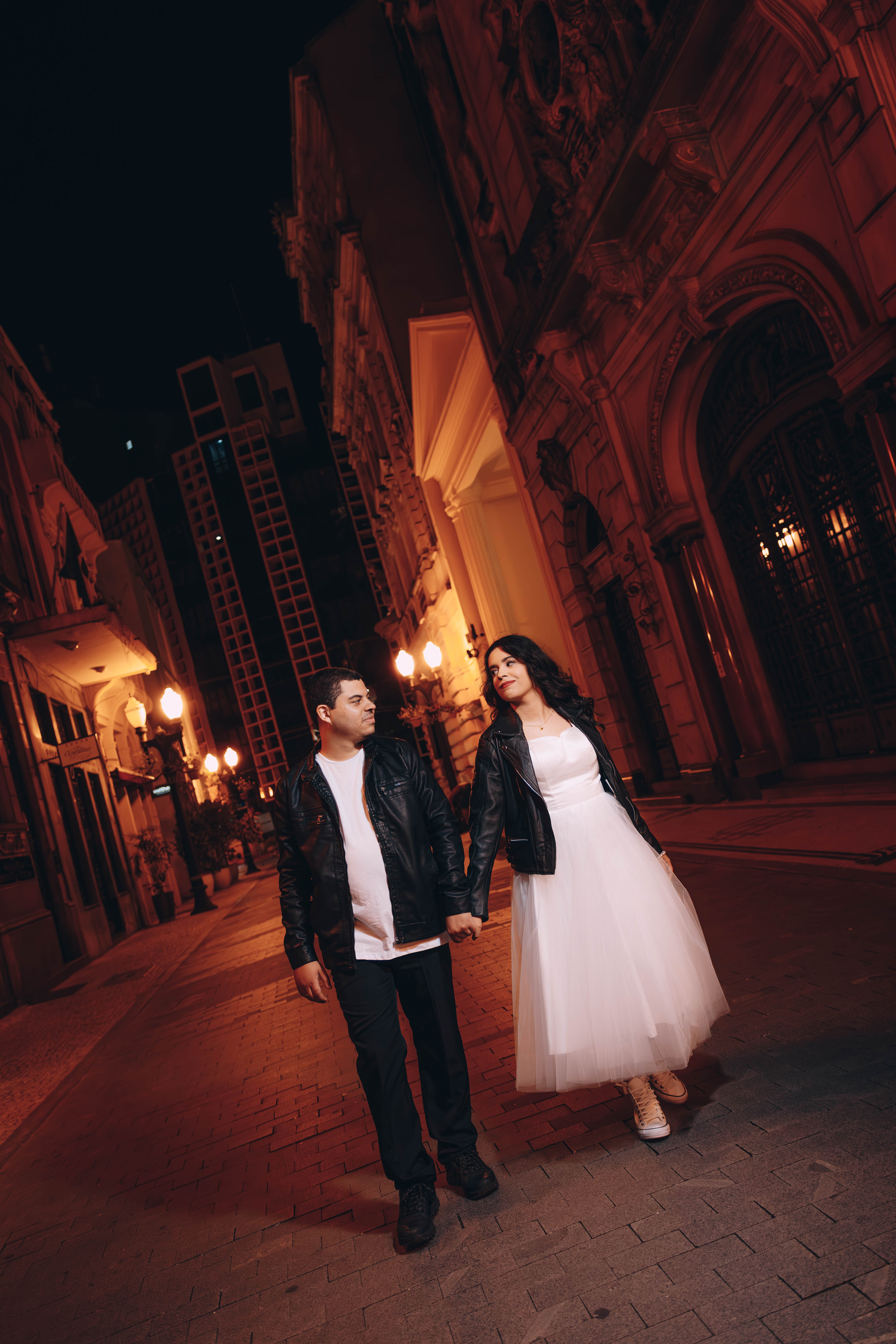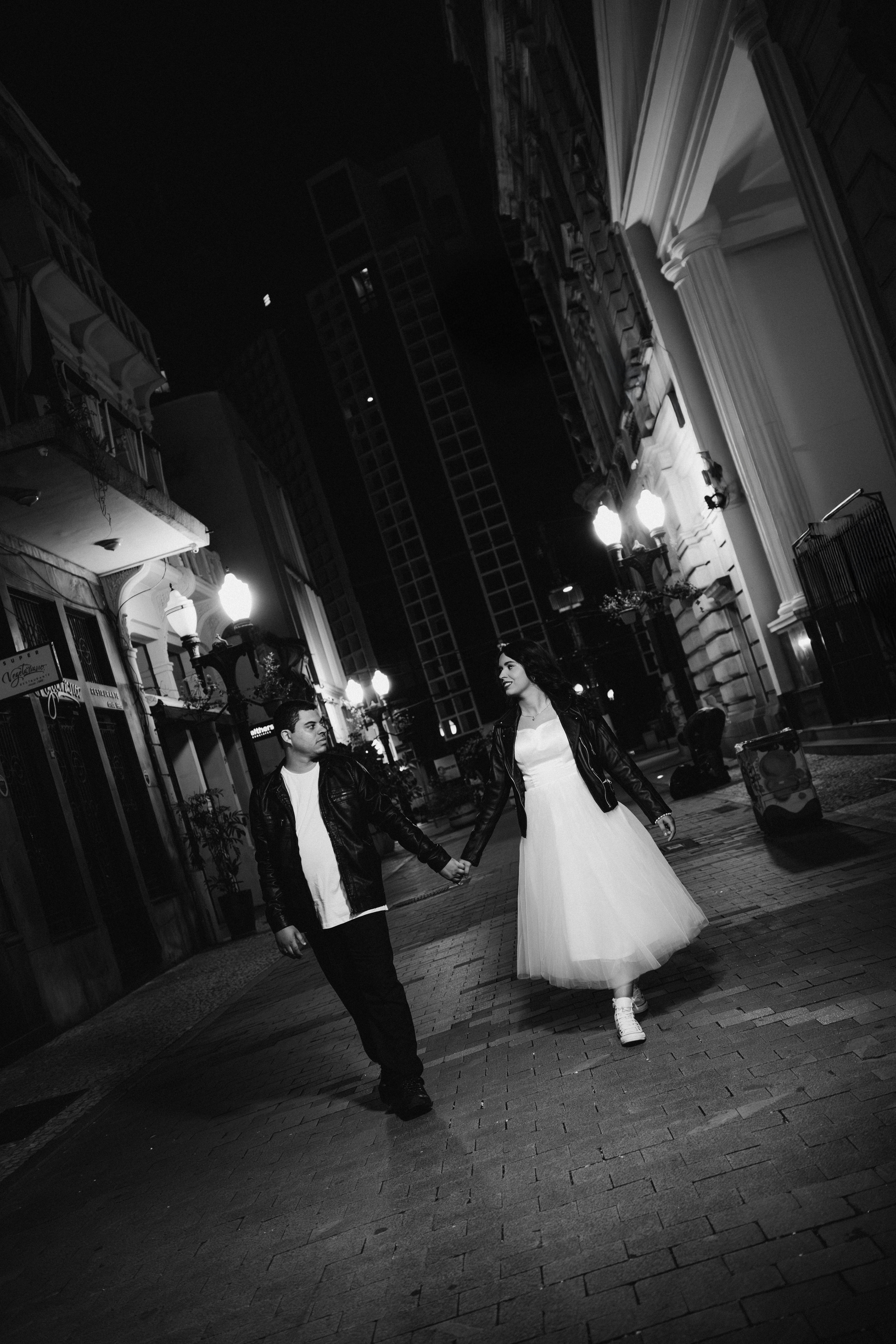 O centro histórico de Santos à noite tem uma alma que poucos lugares possuem. Quando você junta a arquitetura colonial, o brilho do paralelepípedo e um casal que troca o "clichê" pelo Rock n' Roll, a fotografia deixa de ser apenas um registro e vira um manifesto. Posso dizer que estou ansioso demais para o casamento de vocês casalzão!