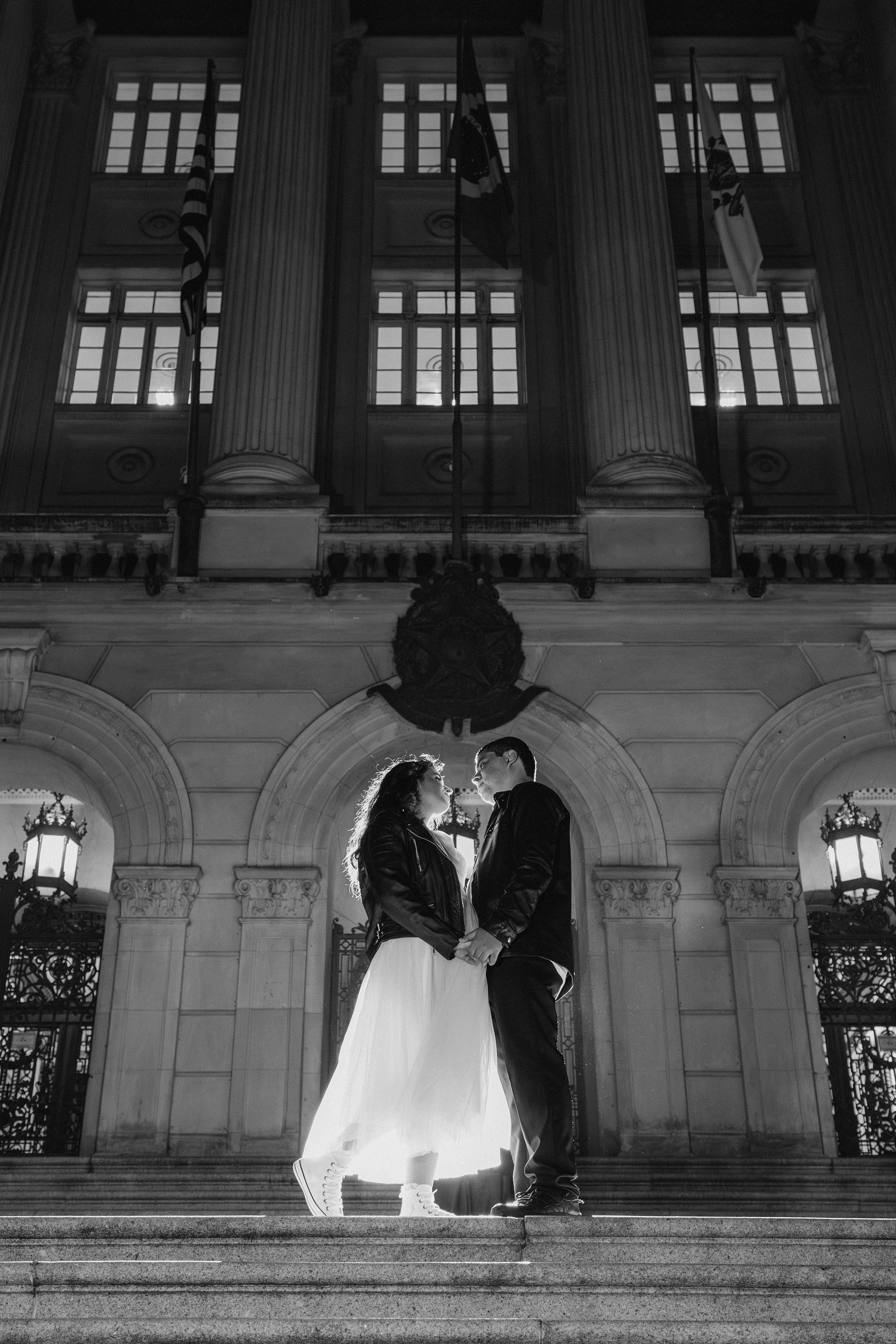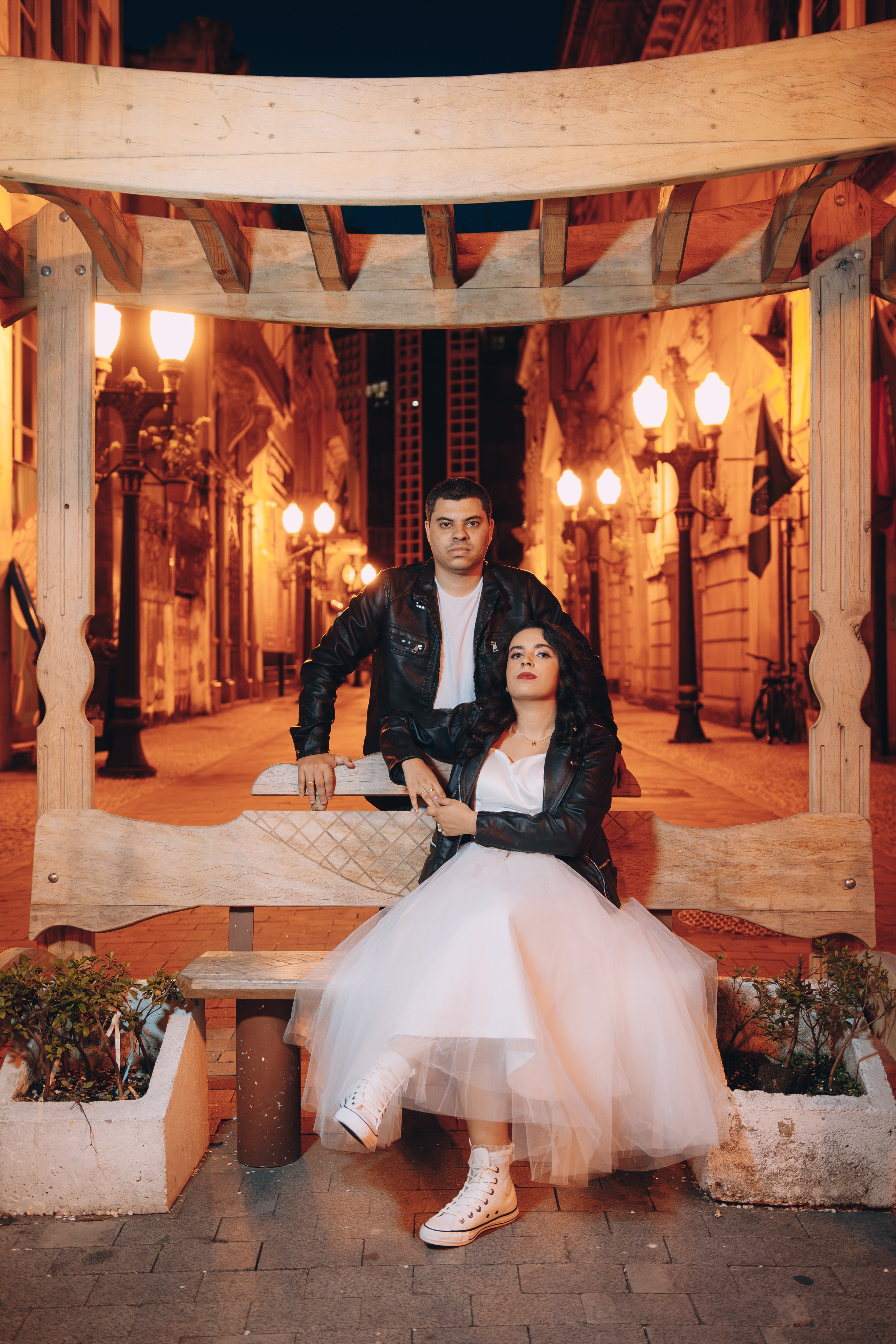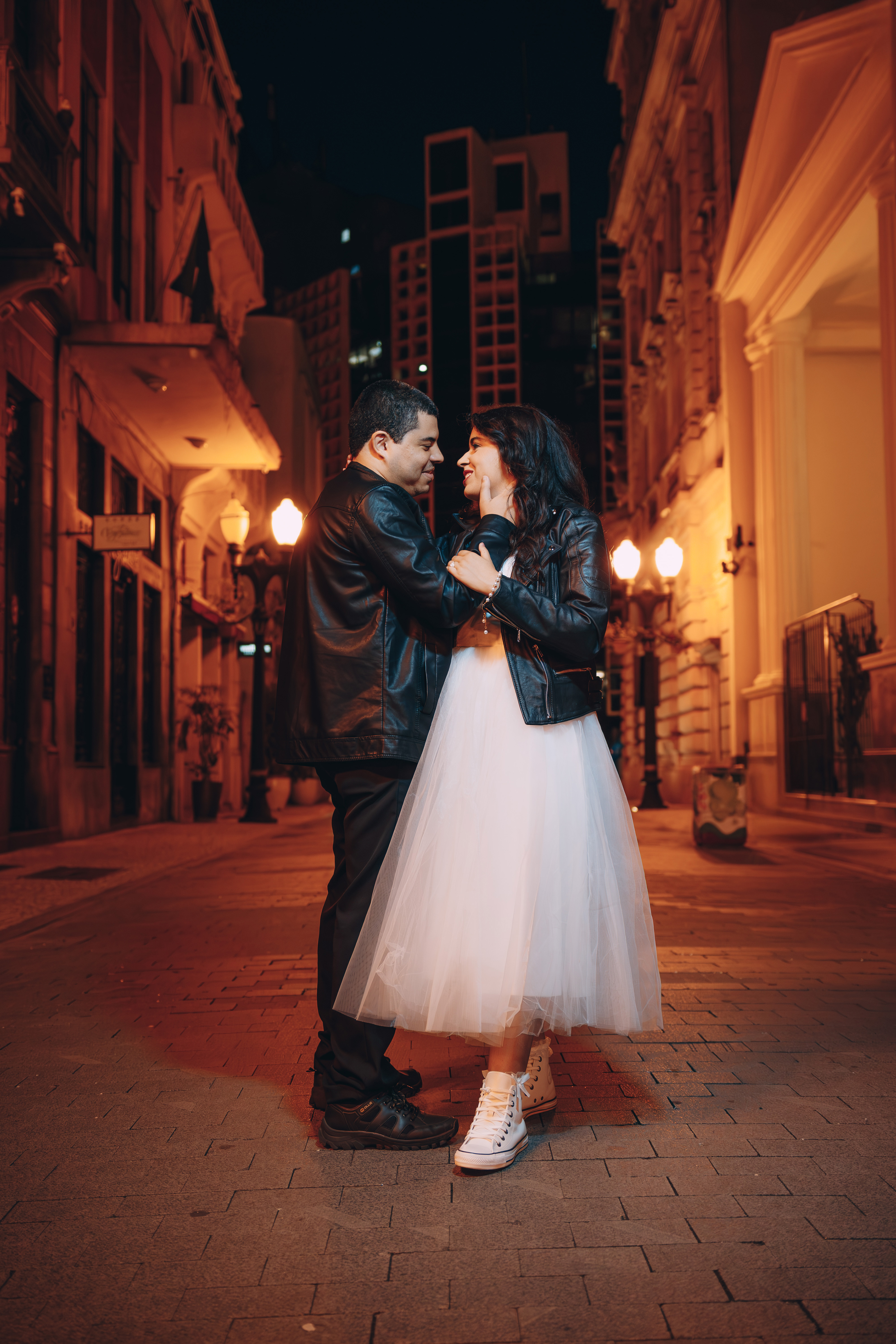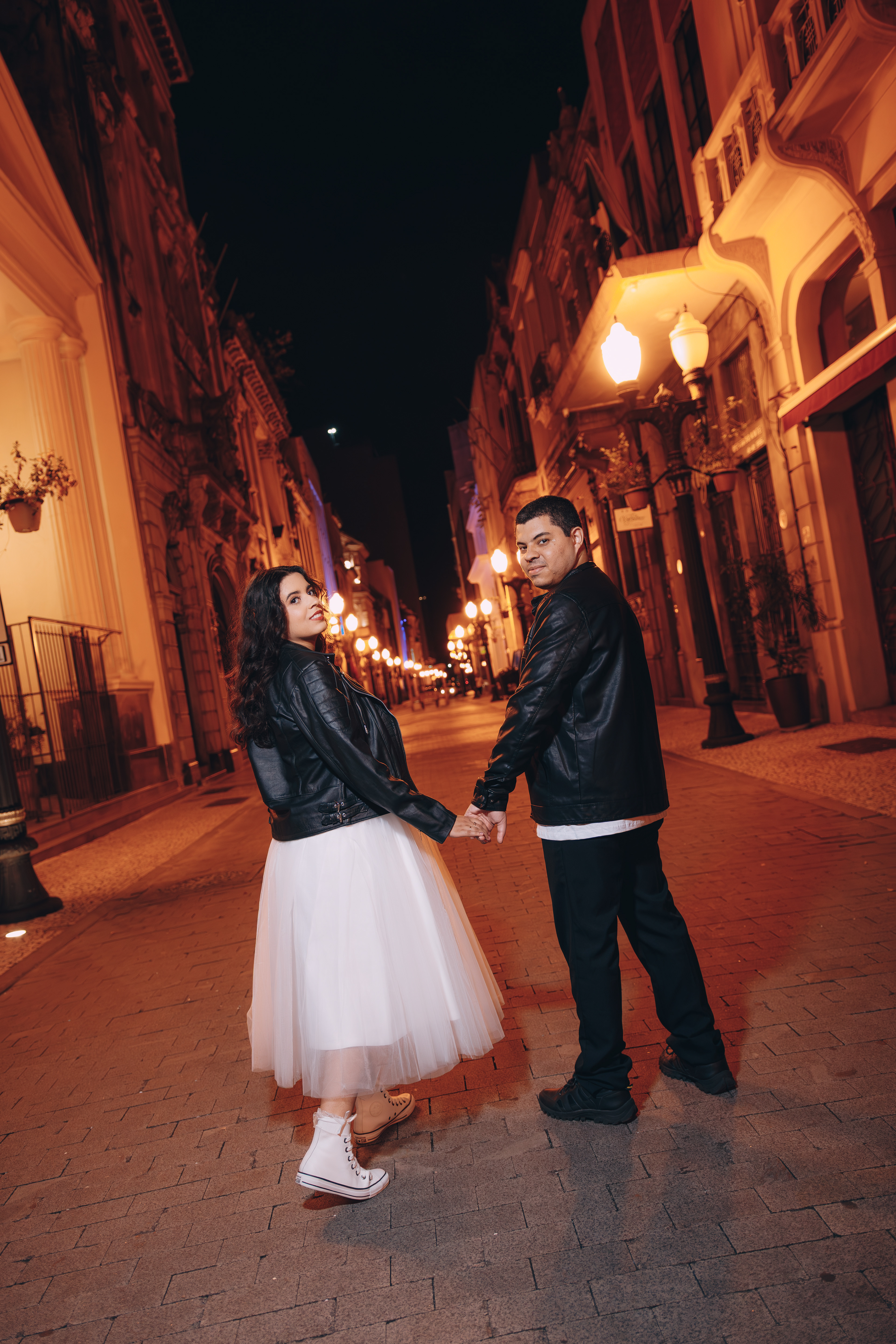 O centro histórico de Santos à noite tem uma alma que poucos lugares possuem. Quando você junta a arquitetura colonial, o brilho do paralelepípedo e um casal que troca o "clichê" pelo Rock n' Roll, a fotografia deixa de ser apenas um registro e vira um manifesto. Posso dizer que estou ansioso demais para o casamento de vocês casalzão!