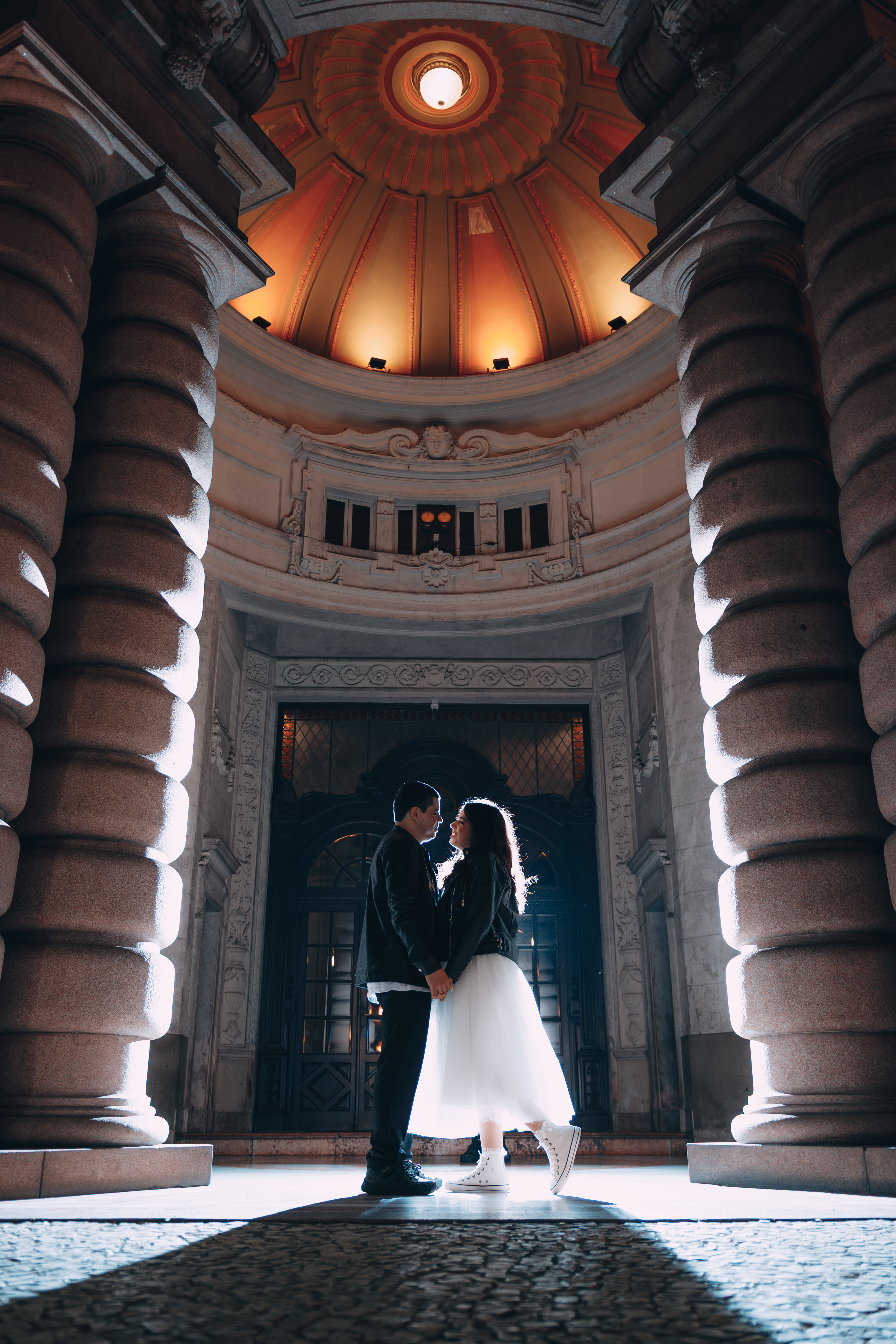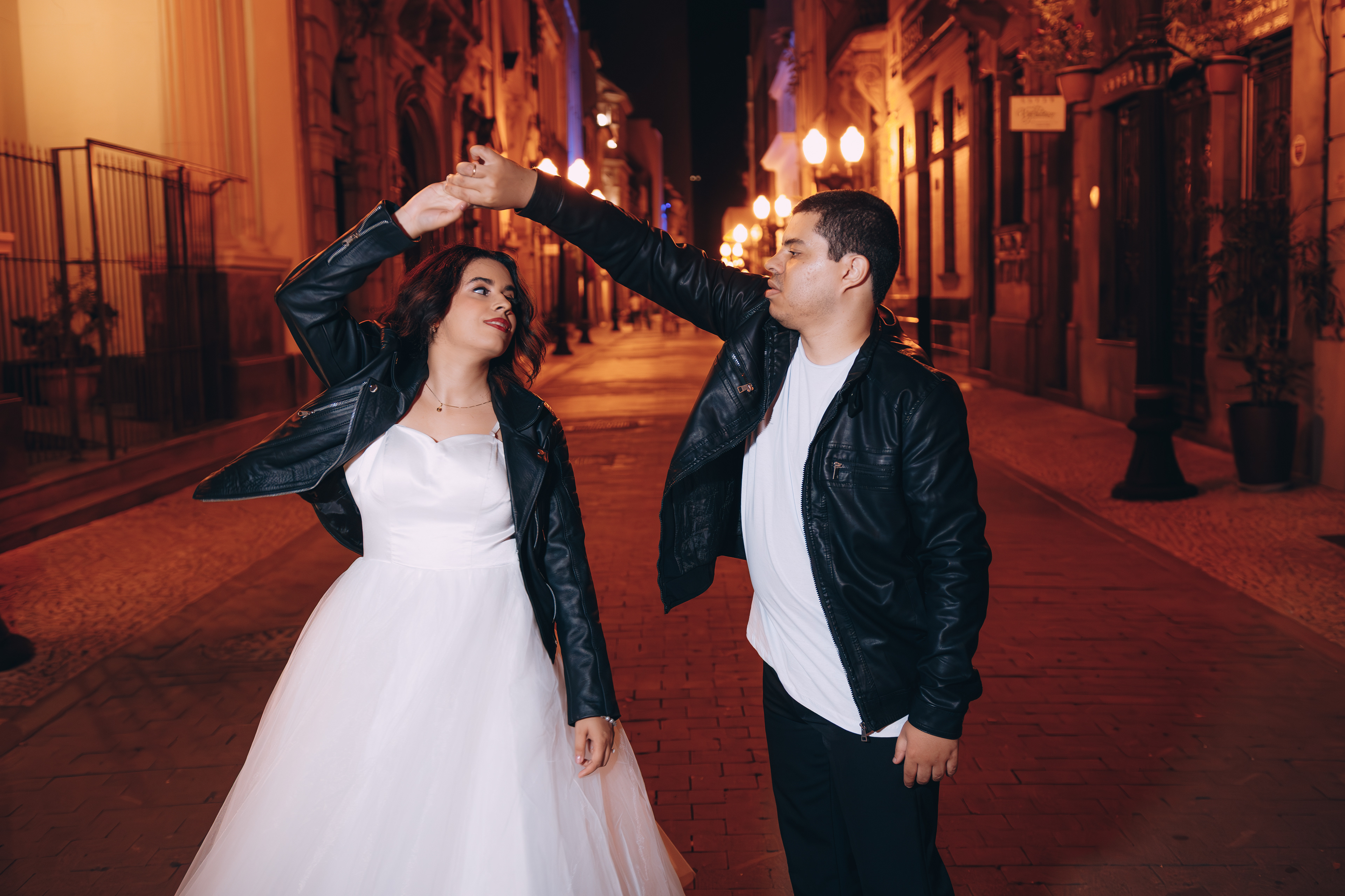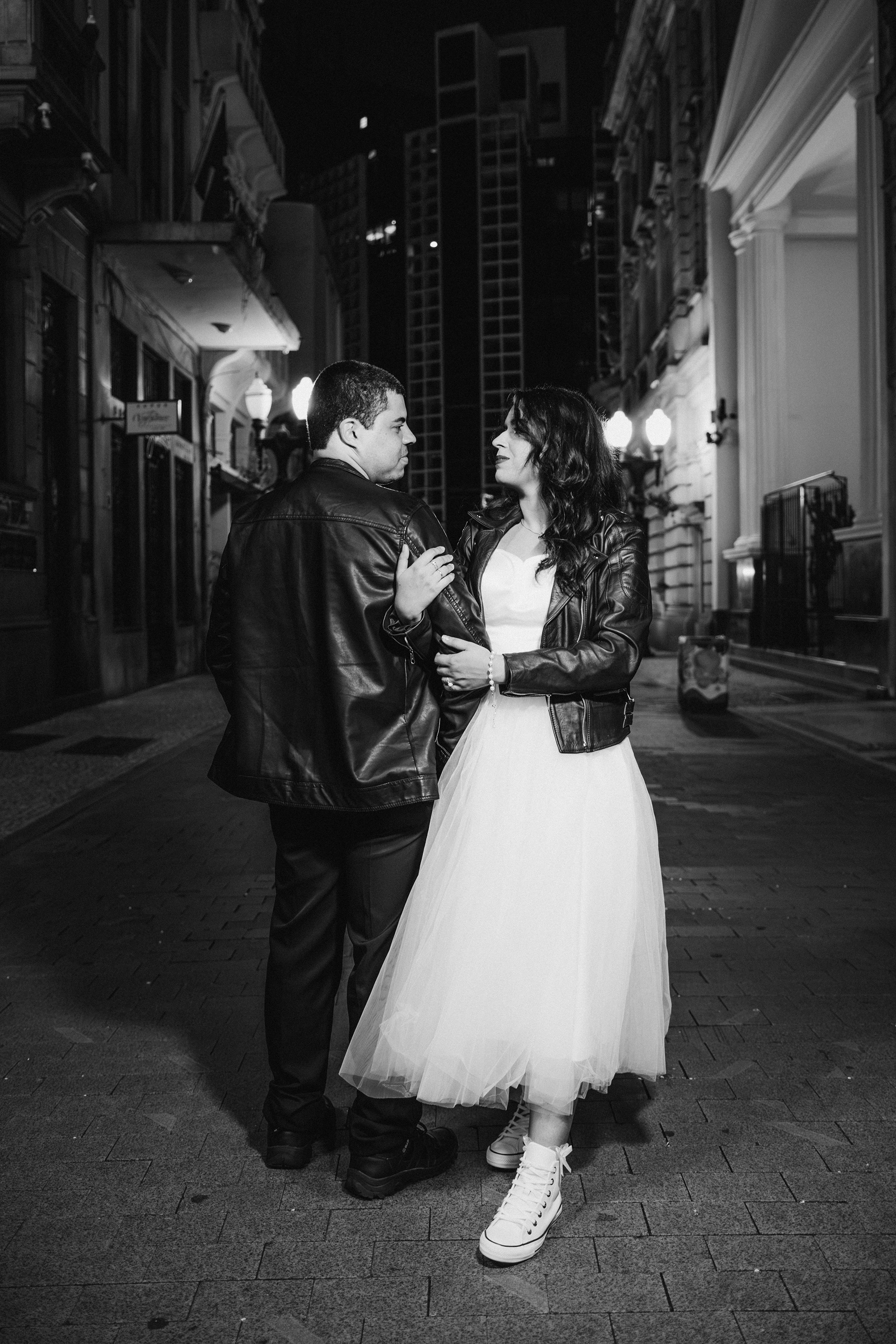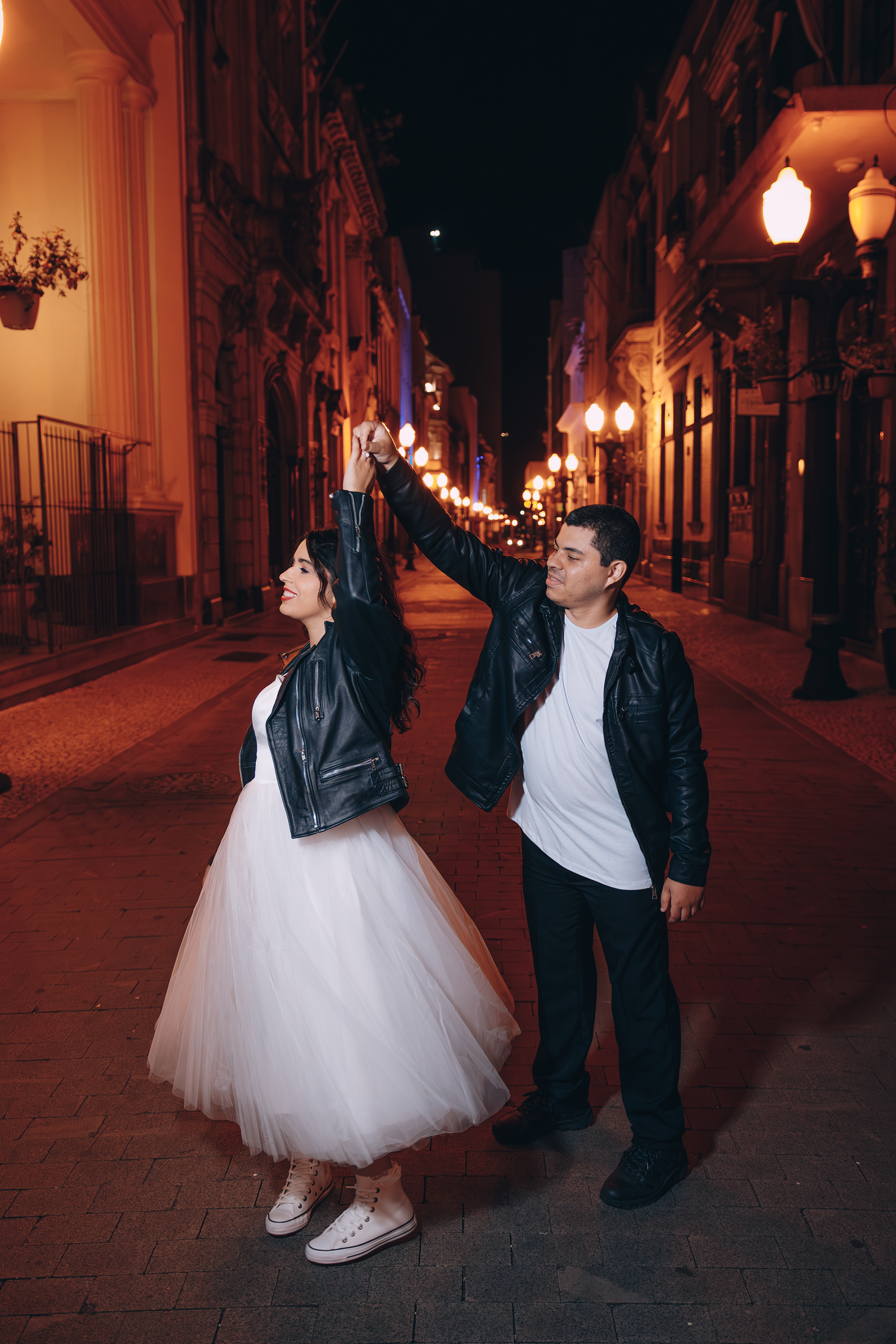 O centro histórico de Santos à noite tem uma alma que poucos lugares possuem. Quando você junta a arquitetura colonial, o brilho do paralelepípedo e um casal que troca o "clichê" pelo Rock n' Roll, a fotografia deixa de ser apenas um registro e vira um manifesto. Posso dizer que estou ansioso demais para o casamento de vocês casalzão!