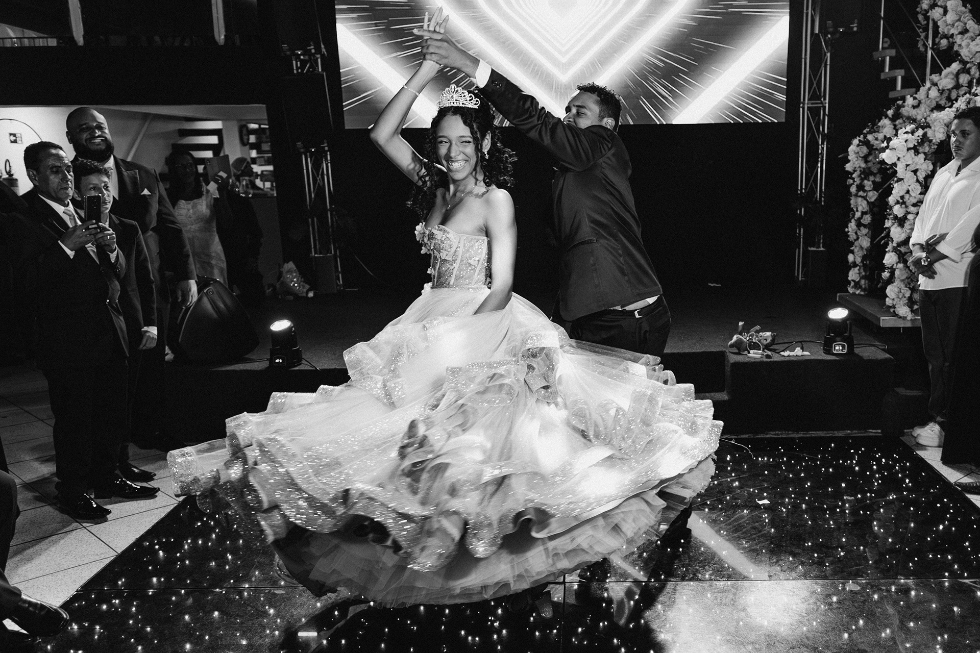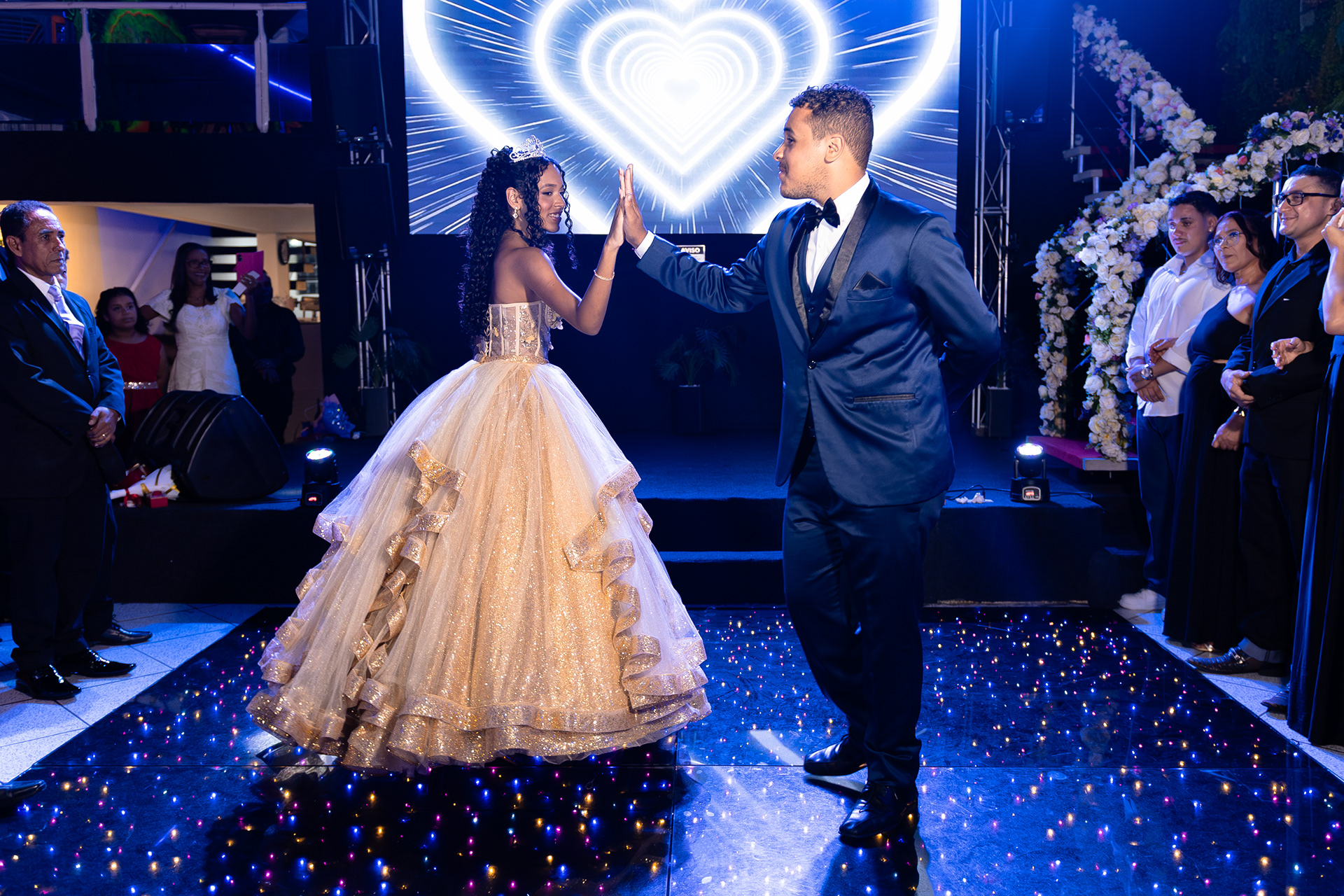 Existem festas que passam voando, e existem noites que a gente guarda na memória pela energia de quem está ali. Fotografar os 15 anos da Ana Luiza foi exatamente assim: um misto de brilho, emoção e muita leveza. Ana, queria te agradecer de coração por todo o carinho e, principalmente, pela paciência com o meu trabalho. Nem sempre é fácil parar para "mais um clique" no meio da euforia, mas sua disposição fez toda a diferença para que pudéssemos eternizar cada detalhe com a perfeição que você merece. Você brilhou! Um agradecimento especial aos pais, Gleice e Leandro. Obrigado pela confiança em me entregar a responsabilidade de registrar esse capítulo tão importante da família de vocês. Ver a dedicação de vocês em cada detalhe foi inspirador. Que essas fotos sejam o portal para vocês reviverem essa noite mágica sempre que a saudade bater.
